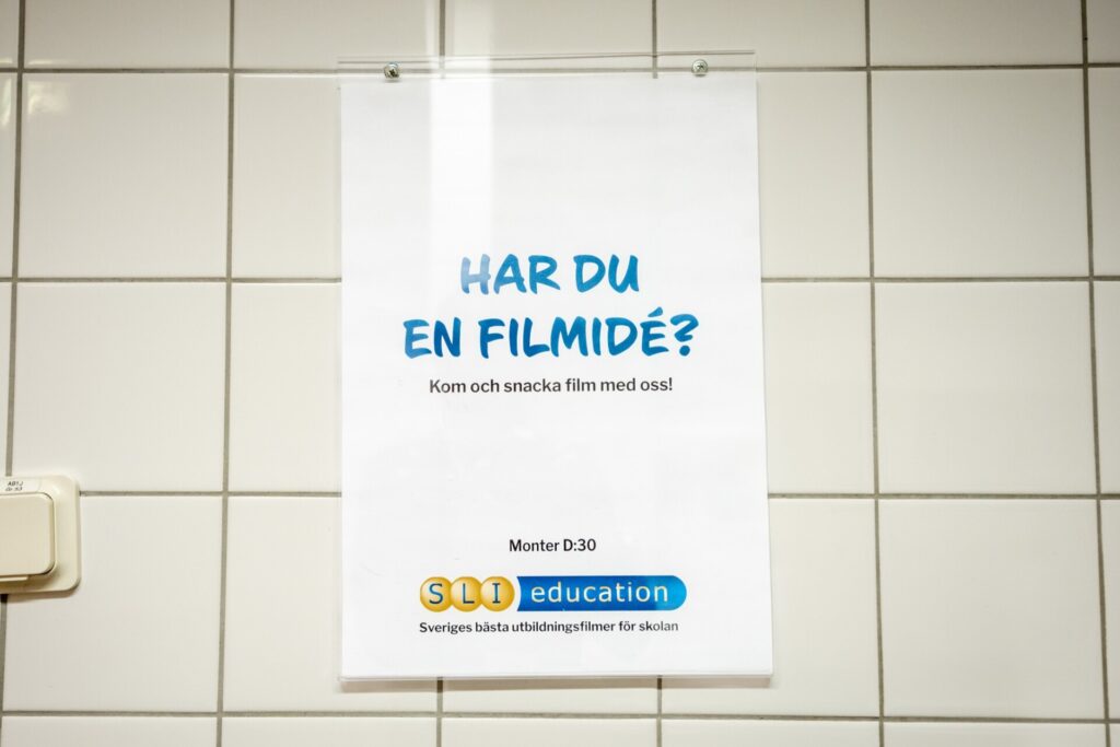 Bioreklamen rullar hela dagarna mellan föreläsningar. En majoritet av besökarna kommer till Sett för föreläsningarna – här är extra synlighet given.
